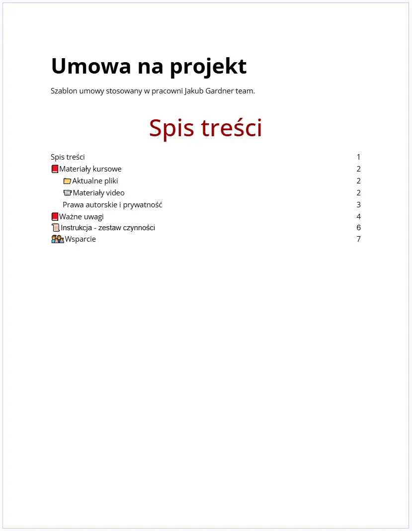 Dostajesz gotowy szablon umowy projektowej, który przez lata powstawał w ogniu realnych zleceń – przy stole z klientem, a nie w gabinecie prawnika (choć bez żadnych korekt podpisało go wielu prawników – klientów pracowni Jakub Gardner team, chwaląc przy okazji ten wzór!). Ten moduł to 100% konkretów bez owijania w bawełnę.