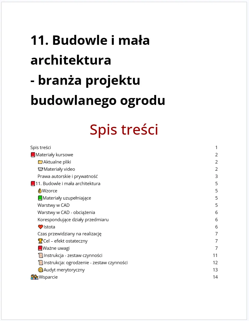 Przejście kursu nie zastępuje konieczności uczenia się ogrodnictwa, sztuki ogrodowej i budowlanej. Kurs uczy jak wykonywać Doskonałe dokumentacje projektowe. Zawód projektanta ogrodów wymaga równolegle obszernej wiedzy z zakresu architektury, inżynierii oraz zakładania i pielęgnacji ogrodów – którą możesz rozwijać z materiałów OOP, JGt i innych źródeł branżowych. Jakich? Zobacz ▶️ video “Jak zacząć przygodę z Projektowaniem Ogrodów?” z listy FAQ.
