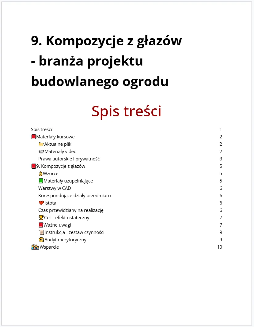 Przejście kursu nie zastępuje konieczności uczenia się ogrodnictwa, sztuki ogrodowej i budowlanej. Kurs uczy jak wykonywać Doskonałe dokumentacje projektowe. Zawód projektanta ogrodów wymaga równolegle obszernej wiedzy z zakresu architektury, inżynierii oraz zakładania i pielęgnacji ogrodów – którą możesz rozwijać z materiałów OOP, JGt i innych źródeł branżowych. Jakich? Zobacz ▶️ video “Jak zacząć przygodę z Projektowaniem Ogrodów?” z listy FAQ.